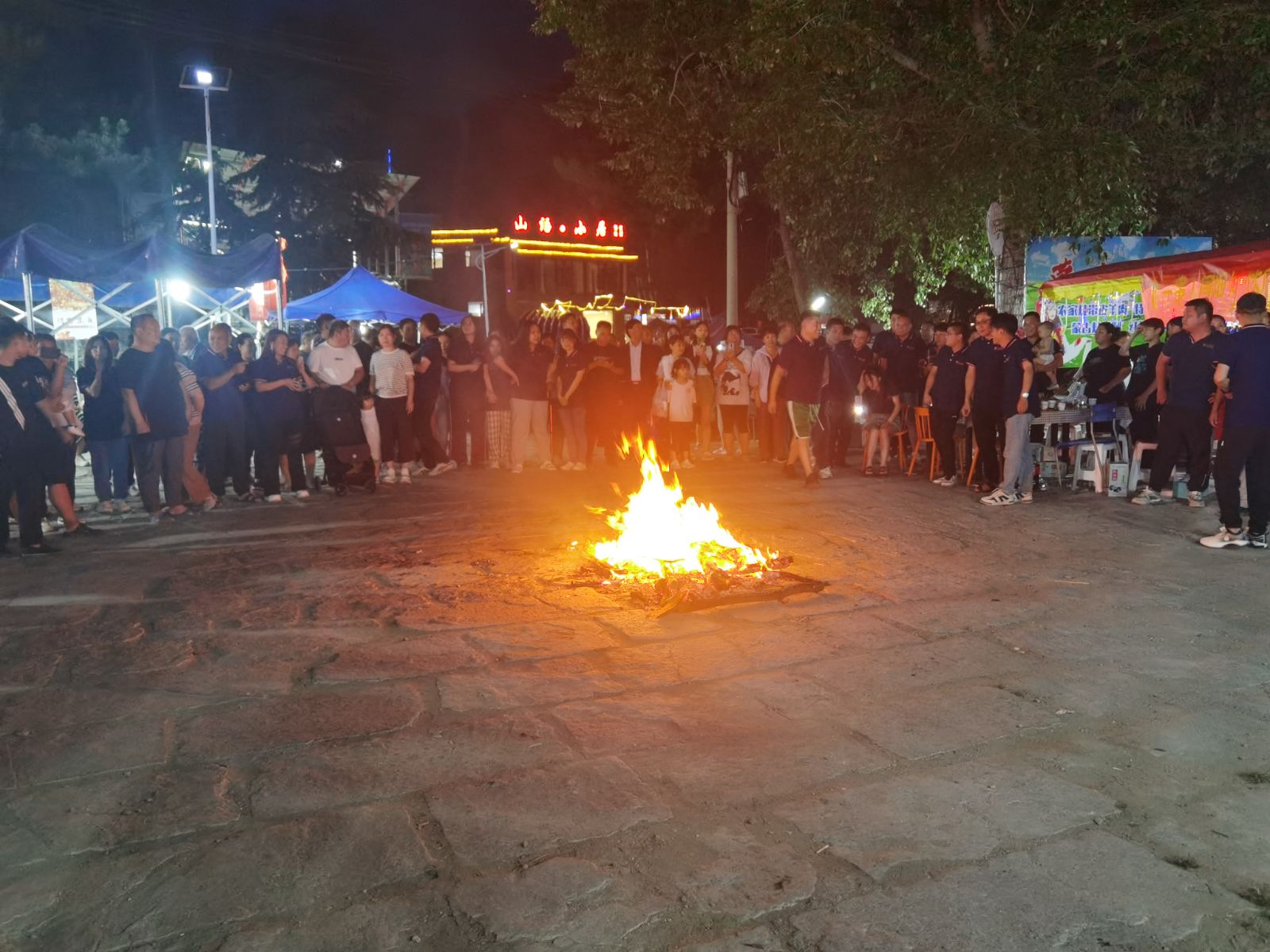 大家手拉著手,圍著篝火跳了起來。現場氣氛推至高潮,歌聲笑聲回蕩在夜空里。