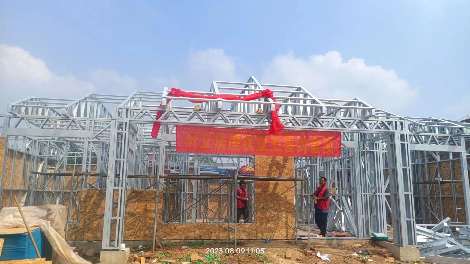 共同慶賀輕鋼房屋進入了施工新階段。